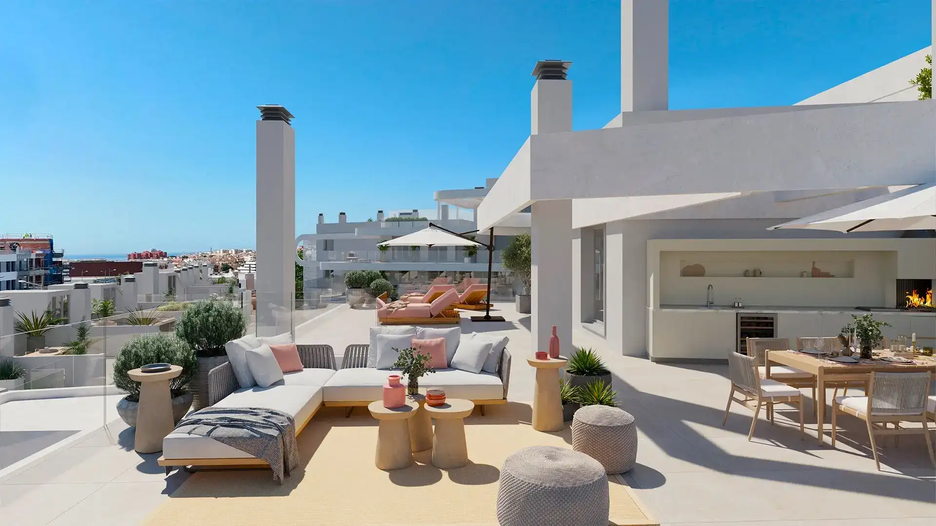 Przestronne tarasy umożliwiają korzystanie z wyjątkowego klimatu Estepony przez cały rok – idealne jako miejsce relaksu, jadalnia na świeżym powietrzu czy strefa wypoczynku z widokiem na otoczenie.
