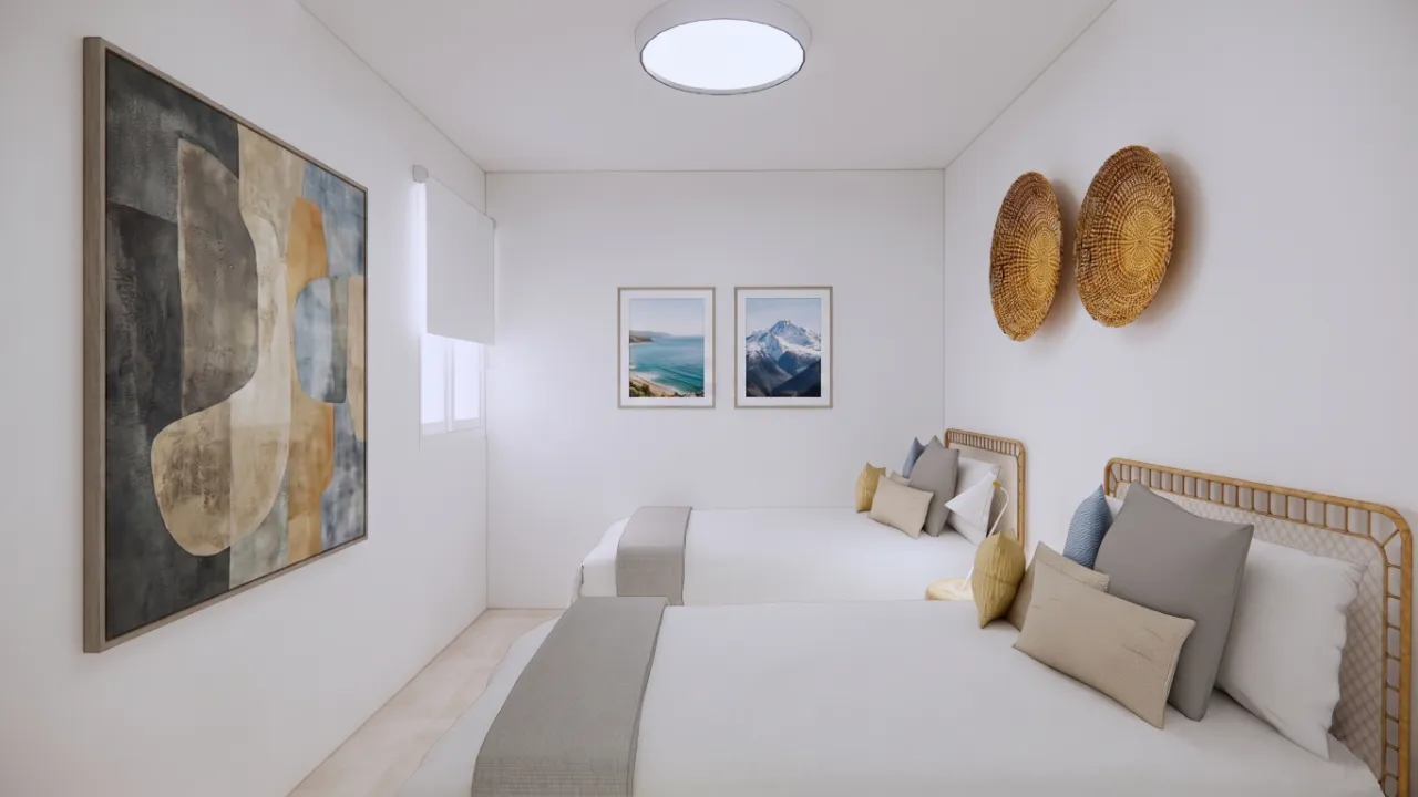 Metraże i układy mieszkań są zróżnicowane, obejmując od jednej do trzech sypialni, co pozwala dopasować ofertę zarówno do osób szukających wakacyjnego apartamentu, jak i bardziej komfortowego miejsca do dłuższego pobytu. Wnętrza oddawane są w wysokim standardzie wykończenia, obejmującym w pełni wyposażone kuchnie, gotowe łazienki oraz zabudowy stałe, a także przygotowanie pod instalację klimatyzacji i rozwiązania energooszczędne, takie jak system aerotermii do podgrzewania wody.