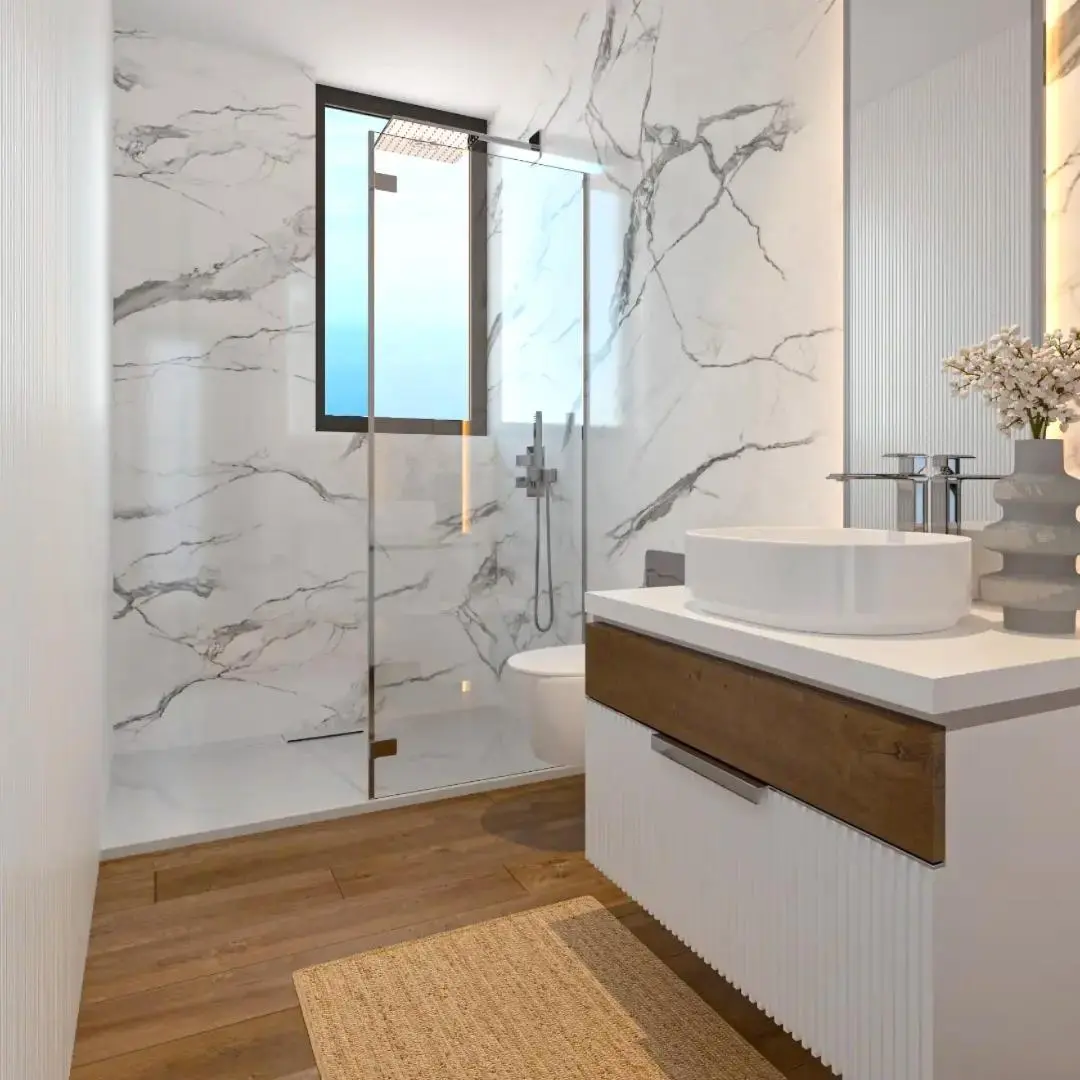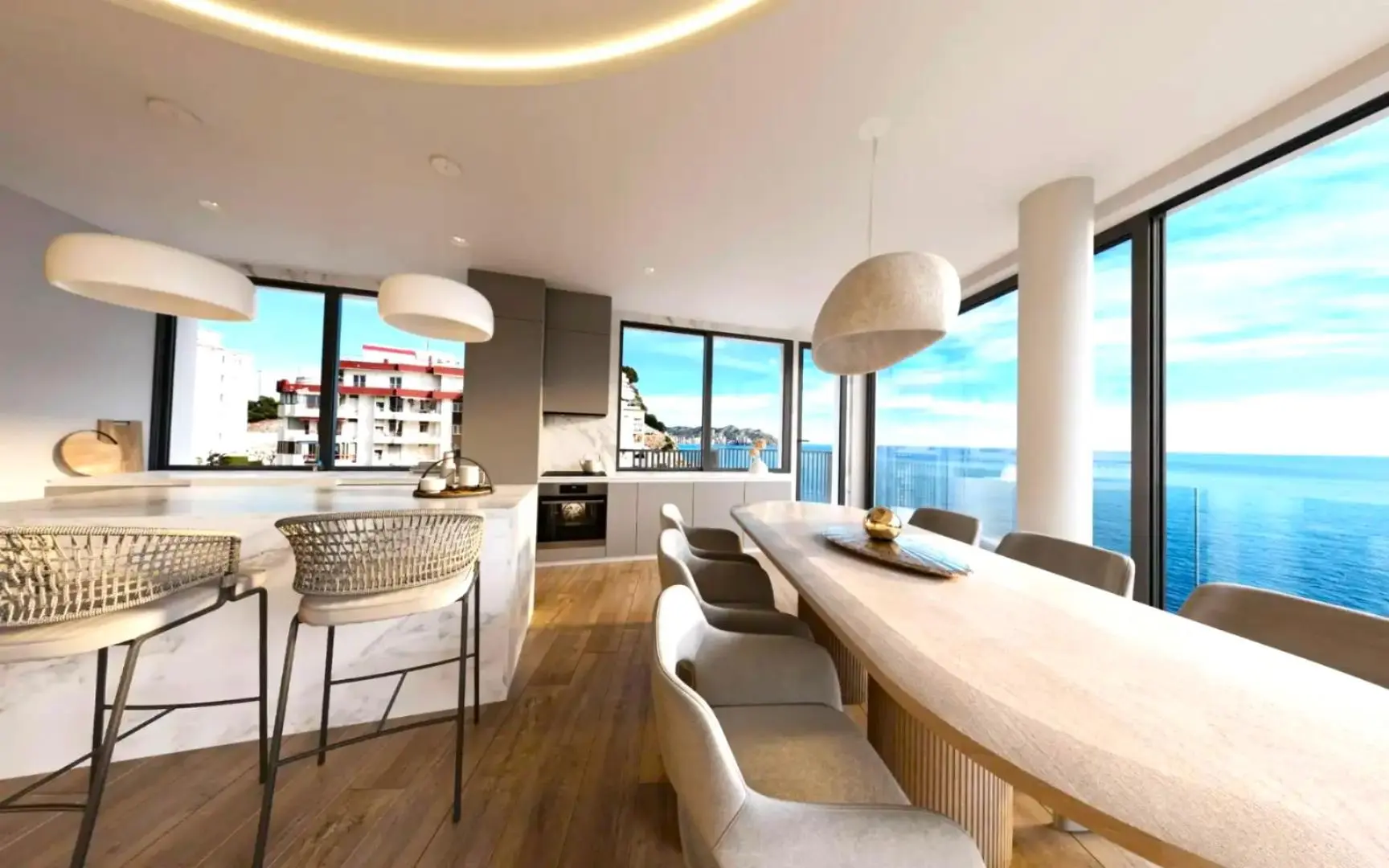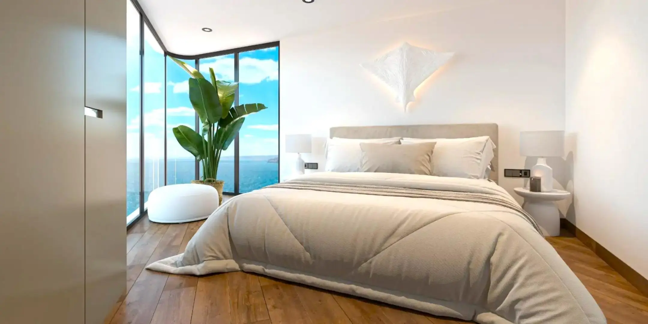 Wszystkie mieszkania posiadają 3 sypialnie i 3 łazienki oraz mają powierzchnię między 114 a 144 m2, a penthousy również mają 3 sypialnie i 3 łazienki i powierzchnię 231 m2. Zarówno apartamenty, jak i penthousy otrzymamy w pełni wykończone. Ponadto w mieszkaniach znajdziemy aerotermalną pompę ciepła, pełne instalacje elektryczne, system automatyki domowej do sterowania klimatyzacją, roletami i oświetleniem, system klimatyzacji z niezależnym termostatem w każdym pomieszczeniu.