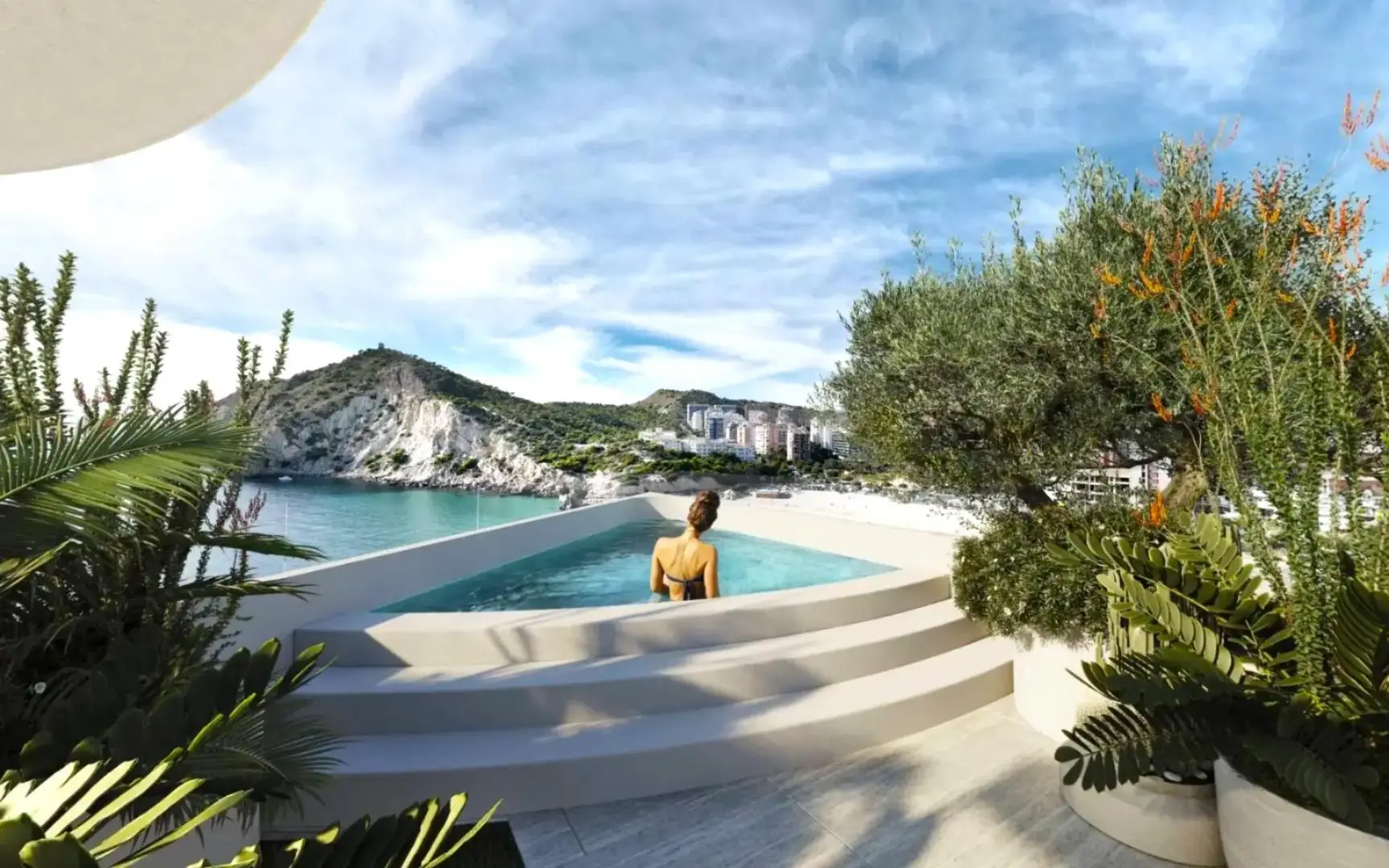Fantastyczna lokalizacja sprawi, że nieruchomość będzie idealnym miejscem by cieszyć się życiem na Costa Blanca mając pewność, że widok na morze którego pragniesz nigdy się nie zmieni. Wystarczy mały spacer by znaleźć się w na plaży Cala de Finestrat, przy której zlokalizowane są liczne kawiarnie, resturacje oraz sklepy. Dodatkowo kilka minut spacerem i po drugiej stronie góry czeka na Ciebie długa i piaszczysta plaża Poniente, która zachęci do spacerów brzegiem morza.