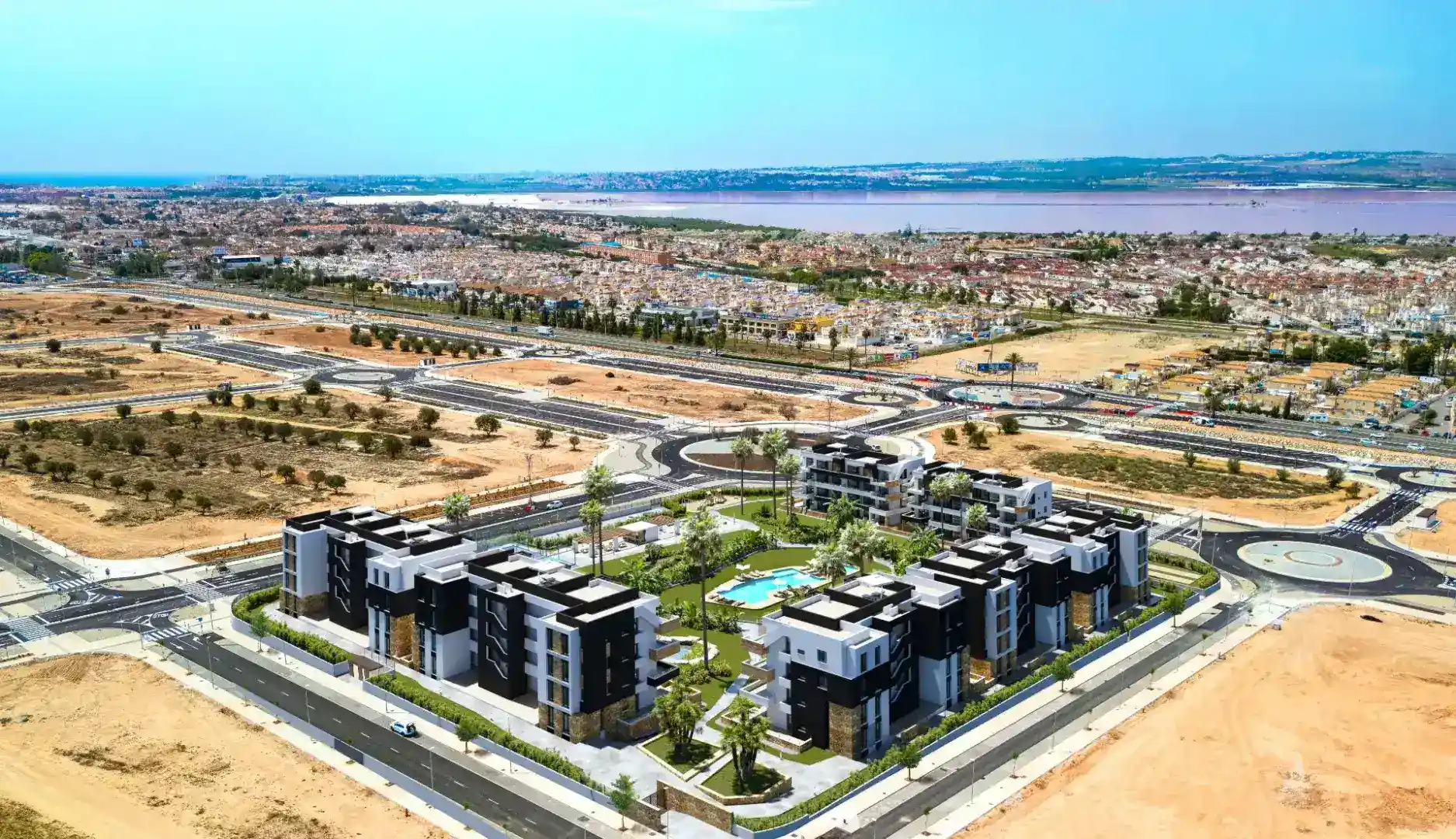 La Hoya to nowoczesny kompleks mieszkaniowy położony w jednej z najbardziej obiecujących i dynamicznie rozwijających się części Torrevieja – w rejonie La Hoya. Ta lokalizacja, otoczona dwoma słynnymi lagunami solnymi – różową i zieloną – tworzy unikatową atmosferę spokoju, zdrowego mikroklimatu i śródziemnomorskiej harmonii. To idealne miejsce dla osób poszukujących połączenia natury, nowoczesnej architektury i wysokiego komfortu życia.