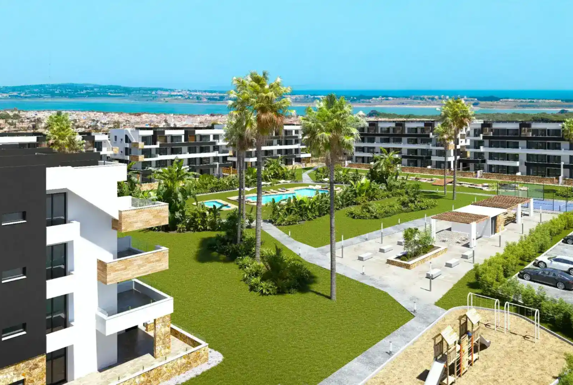 Kompleks składa się z 7 stylowych budynków, w których rozmieszczono 120 ekskluzywnych apartamentów o przemyślanych układach: 2 sypialnie, 2 łazienki, przestronny salon z aneksem kuchennym oraz duże tarasy, które pozwalają cieszyć się śródziemnomorskim słońcem przez cały rok. Dla najbardziej wymagających dostępne są również penthouse’y z prywatnym solarium, idealne pod jacuzzi, letnią kuchnię lub prywatną strefę relaksu.