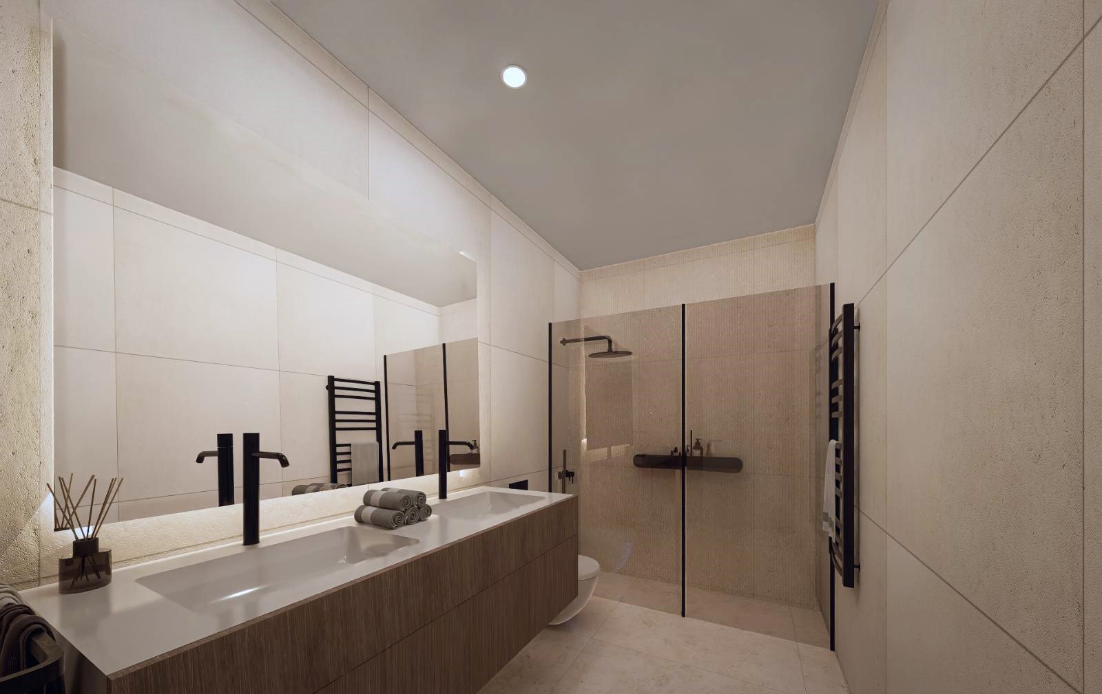 Wnętrza wyróżniają się wysokiej jakości wykończeniem, maksymalnym dostępem do naturalnego światła oraz zastosowaniem nowoczesnych technologii dla efektywności energetycznej i zrównoważonego stylu życia. Kuchnie zostaną wyposażone w zabudowę górną i dolną oraz w sprzęty marki Bosch lub podobne, w tym płyta indukcyjna ze zintegrowanym wyciągiem, piekarnik, kuchenka mikrofalowa i zmywarka. Łazienki zgodnie z standardem deweloperskim w Hiszpanii zostaną w pełni wykończone i wyposażone.