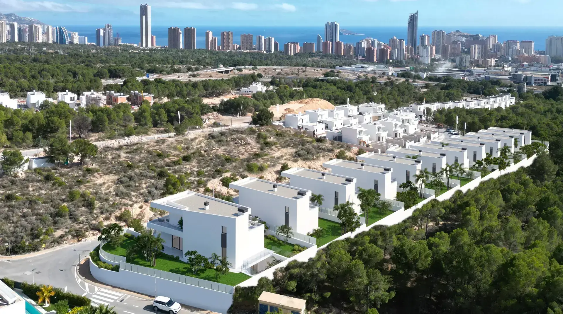 Odkryj kompleks 12 wolnostojących willi, które znajdują się w jednej z najbardziej pożądanych dzielnic Sierra Cortina, oferując oszałamiające i panoramiczne widoki na otaczający park oraz Morze Śródziemne w oddali. Wille oferują starannie zaprojektowany krajobraz z drzewami oliwnymi, palmami i strelicjami, uzupełniony dekoracyjnym kamieniem i automatycznym systemem nawadniania. Dzięki temu ogród wyróżnia się luksusowym charakterem.